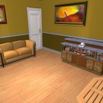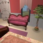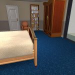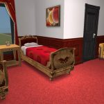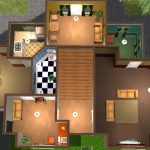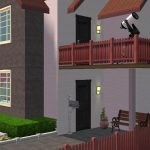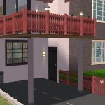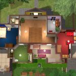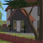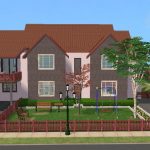 This is a large, 4-bedroom home with spacious gardens. One of the bedrooms is currently being used as a music room. The master en-suite has patio doors leading to an outside breakfast area. There’s even a fake parking area for anyone who has the required expansion packs to place a garage there. 🙂