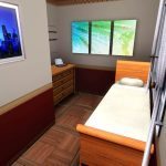 This is a 2-bedroom, modern-style home. It is, however, very small, so the garage door is just for show! You can of course remove it or extend the house to make it accessible.