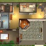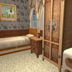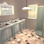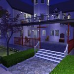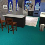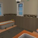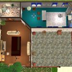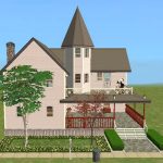 3 bedroom home with small study area in the roof. Don’t be put off by it’s size, though, it’s expensive, and your Sims will have to be rich and successful to afford it! Custom content is the downstairs bathroom flooring, by me.