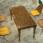 Wicker dining table and chairs, in a grungy, kind of dirty style. The chair comes with 2 cushion patterns. The price stated is for the table and one chair.