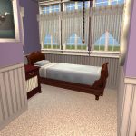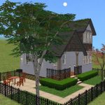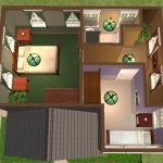 2 bedroom, base game lot with plenty of outside space, perhaps for a garage or pool.
