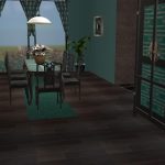 Custom content in the house includes flowers by macarossi at MTS, the aforemention windows by tiggy027 at MTS, walls by Lady Angel, and furniture recolors and walls and floors by me.
