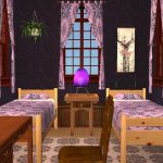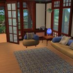 Ginger Baylor has just gotten her dream job! Lobbyist in the Far East! Her objective is to portray a wonderful impression of her country to the people of her host country and gain their trust so that they will want to trade with her country and increase prosperity for both countries. Ginger is completely idealistic and well intentioned. She wants to buy an inviting home in which to entertain and influence the community of her host country in which she chooses to live. Her very professional and trustworthy realtor, Miss Woo, showed her this first option, House of Clouds. Ginger really loved the lush surroundings but worried about maintaining it all until Miss Woo pointed out that there are no shrubs on the lot which require trimming by sims! Also, the lot itself is small. The inside of the house, reached after crossing a Far East looking bridge and climbing a flight of stairs impressed Ginger very favorably, especially the designer Far East tiles in the home which added character and color. The house had a rustic feel from the natural wood siding and floors and open decorative French doors which let in the fragrant air. The house has two bedrooms which could sleep 4 sims. Ginger is hoping to get a lot of visitors from home so that is important to her. Miss Woo also has two other options in Ginger’s price range which is 75,000 simoleons.