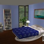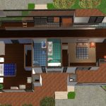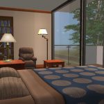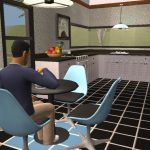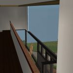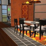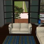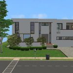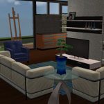 Sim builders saw an interior shot of a modern house with glass walls and second floor overlooking the first floor and built this house from the inside out based on that picture. Thanks to the beautiful and versatile windows by tiggy027 and modern tiles by Immortality, not to mention the new table design by Lady Angel, the builders were very pleased with the house and have been playing with test sim, Lucius Belmont, who left his supposedly 19th century home for something more up to date. Tiggy’s windows make lovely glass doors too which you will see open in this home (which does have a burglar alarm, not that it matters) but which might need to be replaced with the regular sliding door if your sims feel insecure with so much open air. Also, I’m not at all sure this house is Season’s proof with its flat roof. Lucius is currently enjoying the base game weather and almost friendly enough to flirt with one Leah Limpit.