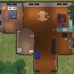 This surprisingly spacious starter home is under 20,000 and furnished with everything a young Sim needs to begin their journey, including a phone, bookshelf and games console.
