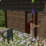 Little Forest Glade is a small cottage with overgrown garden, perfect for a single Sim, but with space on the lot to add on another room or patio space. Thanks to affordable cc by LadyAngel and Karen Lorraine, the cottage is priced at 19,800. All skill items and basic furnishings and decor will allow your Sim to start out in comfort. My test Sim, Serena Merlin, was able to afford a new outfit by Cleos@MTS and a new hairstyle by lidiqnata@MTS, and has been working on creativity. She sold her last painting for 40 simoleons, and is planning a home business selling her art. She met Reyes Robles, another test Sim, and they are in love, soon to be married. Reyes has more than 100,000 simoleons because he tested one of my huge, Spanish style houses and hit the motherlode a few times. To be honest, with all that money, what’s the point of playing. Hopefully you have a Sim who won’t lose his or her motivation and will make Little Forest Glade home.