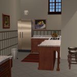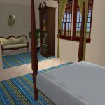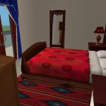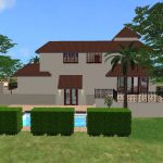 I picture Magdalena in Costa Rica or El Salvador. It’s all white stucco with brick accent, and white tile throughout creating a spotlessly clean, although not sterile environment. Furniture, rugs, and drapes provide splashes of color. Fortunately there is a fire alarm because my sim, Scout Tester, put a TV dinner in and somehow the stove caught fire. This caused a huge loss of mood for Scout who then required a visit from the psychiatrist. I’m hoping things will look up for him. He has unlimited money and I’ve already bought him a sculpture, painting, and easel. Try tropical living with your sims!