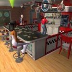 Cute, little bowling alley and eatery. This should be small enough to fit into any neighbourhood, and your Sims can have hours of fun together!