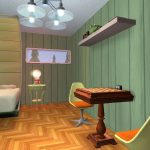 Oooh! Score! I like that green panelling a lot. Of course the style of the house is the universal sim favorite, modern! This one has its own personality though which is nice. Happy day all!