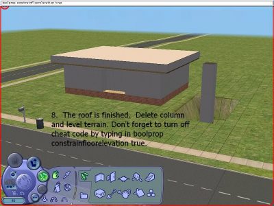 Here is an easy 8 step tutorial for building a flat roof for those modern houses we love in the Sims 2. It will also serve as an introduction for using the valuable cheat code constrainfloorelevation false.