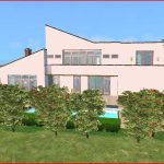 Here is a four to five bedroom, three bathroom modern home for cutting edge sims. The house is “super modern” with sharp angles and sloped roofs and has been play tested to make sure things work. The canopy bed in the master can be either single or double. If you want double, click on the base of the bed. Otherwise, the bed can be used as two twins. The house is equipped with lots of skill items and has plenty of room for entertaining. Hope your sims will love living here!