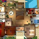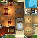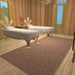 This was my entry for the October 2013 challenge. It’s an hotel with a beach-style theme. it has 6 bedrooms, and 2 of those are ‘budget’ singles, so even our poorest Sims can still afford a small holiday!