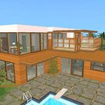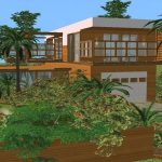 The house itself is all natural wood from the local rain forest, and natural stone tile made from local river stones. Other tropical features include a sort of “floating veranda” on the second floor and lots of floor to ceiling windows to let in the views and natural light. Base game garage is hopefully convertible to real.
