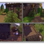 Here is another residential lot from my medieval world, Dracul Isle. This little home is a step-up to having a few more amenities in it and better decor. It has that open concept living room and eat-in kitchen and a bath downstairs. This home has a laundry room with a washer and a clothesline. The master bedroom is upstairs and has an attached bath. The grounds have a small garden and a recreation area.