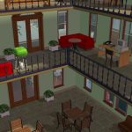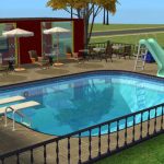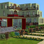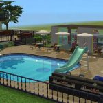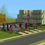 9-room dorm with pool and outside diner. There are plenty of study and recreational activities for your Sims to use so they can learn and have fun with their friends.