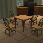 This is a One Tile Table called for Quaint. It is not based on any posted work and is cloned from a LS dining table. What makes a difference is that the table has 2 colorable subsets, so you can recolor the legs, the surface or both. They match the game chair that came with the original 2 tiles table. I converted the chair to LS, so I made the small table once LS is meant for a 4 people household only. No need for large tables.