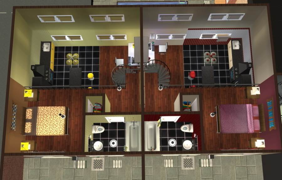 Wow! These are fantastic! I always love your realistic lots. I really love that taller mid section of the apartments and then the two levels. The building looks incredible modern and sleek with straight lines but not at all boxy or boring. This is a winner!