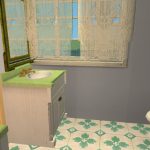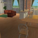 Small, base-game home with 1 bedroom and open-plan living area. The only custom content are the Mint Potenza Floor Tiles and my old brick wall.