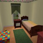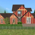 This house is made mainly of roofs and dormers with a few inside walls and an outside wall on the second floor. I think it looks rather like a chalet. I play tested with a new sim, Roofus Techo who met and married another new sim Marnie Rogette. I like this house so much that the Techos now have four children with a fifth on the way. I had to add on to the house and there was room to do so. Roofus has worked his way up to commander in the military career. He’s a great dad too and, using smart milk, he taught their oldest son, Landro, to walk, talk, and be potty trained all in one sitting! Their second son is Reardon, the third Connor, the little girl is Findley, and I don’t know about the fifth child yet. I haven’t played sims in ages, but the Techo family has captured my imagination. I now have other famiies having kids so the Techo kids will have someone to marry. I hope you like this house as much as I!