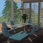 Silverbar (so named because of gray walls and roof) is a compact modern 2 bedroom, 2 bath home for today’s career or independently wealthy sim. Sim builders spent days and days making custom picture windows to achieve light and space for base game clients. Although satisfied with the windows, the builders must let you know that a diagonal version was just way beyond their skill level inspite of tutorials and queries. If used in building a house with diagonal walls, the window will revert to the Independent Expressions Big Shop Window. (A special thanks must be given to maybesomethingdunno at MTS for helping solve the problem of the reverting wallmask). If your sims are looking for lots of light but not that much space, this house is for them.