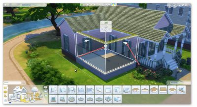 You can add a foundation at any time. A game update now allows you to add different foundations to different parts of the lot – hurray! For this example, we have built a simple room: