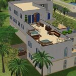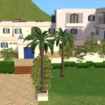 This is a conversion of @triciamanly’s amazing Sparkling Greece lot. The only custom content is her decorative quarter wall, the rest of the cc has been stripped. It’s now a luxury hotel with a pool and a rooftop entertainment area.