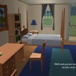 I built a base game, residential version of this house, and then I thought it might make a nice bed and breakfast, but I thought I shouldn’t forever impose on ekrubynaffit, or Lady Angel to convert it to a real hotel, so I started up the old computer with the ep’s and walked on the treadmill while it loaded. I walked a half a mile at 4 miles an hour, but I digress. The “old” house has 3 cozy rooms: a single room with private bath which rents for 357 per night, a double room with private bath which rents for 708 a night, and a single suite with kitchenette which rents for 494 a night. Your sims will have their choice of an outdoor dining restaurant, or homestyle dining which they cook themselves. I did play test this. If you rent the suite with the kitchenette you can have food at your fingertips, and of course there is room service. There is a nice big living room with fireplace and big screen TV and also chess board, oh and bumping stereo. I placed the lot by the beach for a nice view. Take a minibreak!