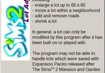 This new version of the LotAdjuster has all of the features of version 2.x, but allows you to adjust the size of the lot in lot-sized tiles, rather than neighborhood-sized tiles.
