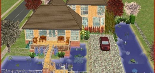 This country house has 3 bedrooms, 2.5 baths, lounge and dining room with fireplaces, morning room, and large kitchen. The garden will of course be a headache for Sims, but I imagine a beautiful English garden is a nightmare for real gardeners too.