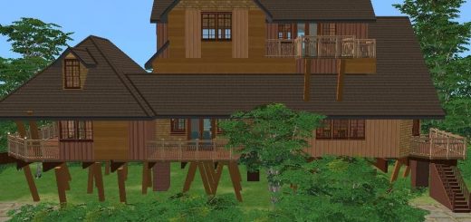 Your sims will enjoy the many balconies with tree views. They will have plenty of space with 4 bedrooms, 3 baths, open concept kitchen, dining, and den, and formal living room with fireplace and 3 story vaulted ceiling.