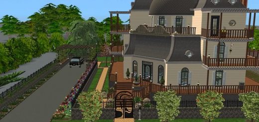 This is a 3-bedroom, base game lot. The master bedroom has a dressing room that is currently being used as a nursery, and there’s a huge attic that could possibly house another bedroom or 2!