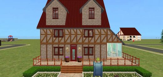 These Tudor-style townhouses are unfurnished and cheap enough for your Sims who are just starting out. They are of identical design, but very roomy. Each has 2 bedrooms and 1 and a half bathrooms.