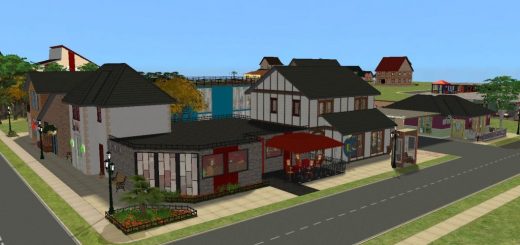 Fully equipped shopping centre with everything your Sims could need for daytime shopping and night-time fun!