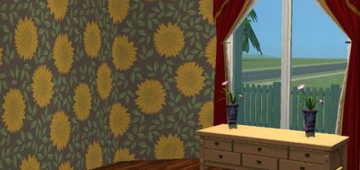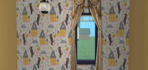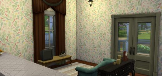 Vintage wallpaper with white panelling. This can be found under the panelling section of the build mode wall coverings section of the catalogue.