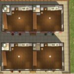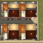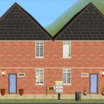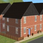 4-house development, unfurnished. Each house has 2 bedrooms, a single and a double. There are 1 and a half bathrooms, but no gardens.