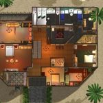 Beach hotel with 7 bedrooms. There is a huge family suite that will sleep 5, and several budget rooms for the poorer Sims. 😀