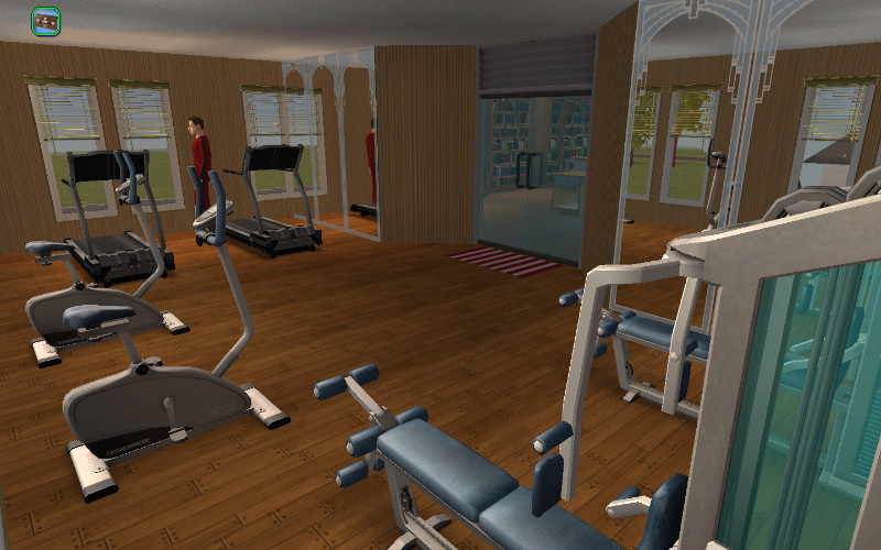 Recreation centre for grown-up Sims! There’s a pool, games area, bar and coffee shop downstairs. Upstairs, there’s a library and internet cafe as well as a small gym. This was made with no custom content.