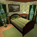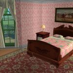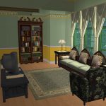Victor Victorian is the home of blonde, family aspiration Sim, Victoria Morris, who wants everything homey, colorful, floral, and cheerful. I guess you could say this house is her “hope house” because she is hoping to meet just the right father for her children. The house has 3 bedrooms and 1.5 baths, nice front veranda and back porch, snug parlor, eat-in sunny kitchen, and elegant formal dining room. The house will be a gardening nightmare as it has lots of white daisies, but most shrubs are actually trees and won’t need trimming. This is the perfect spot for an old-fashioned, homebody Sim.