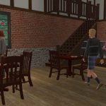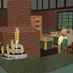 Here is another community lot for the Downton Abbey neighborhood. It’s an all purpose place which includes groceries, bookstore, clothing, hair salon, and outdoor patio with grill. Also there are 3 sets of restrooms for your Sims’ comfort and convenience. There is a little indoor cafe area to drink coffee or eat a sandwich and socialize. In the bookstore upstairs, there is a chess board. I think this lot has most everything except a swimming pool. Enjoy little Sims!